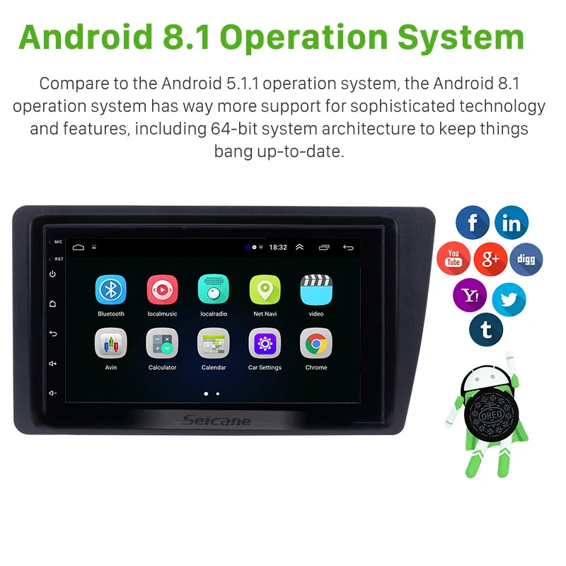 - Product name : Seicane Android 8.1 Car Radio Head Unit Player For 2001-2005 Honda Civic left hand drive GPS Naviga